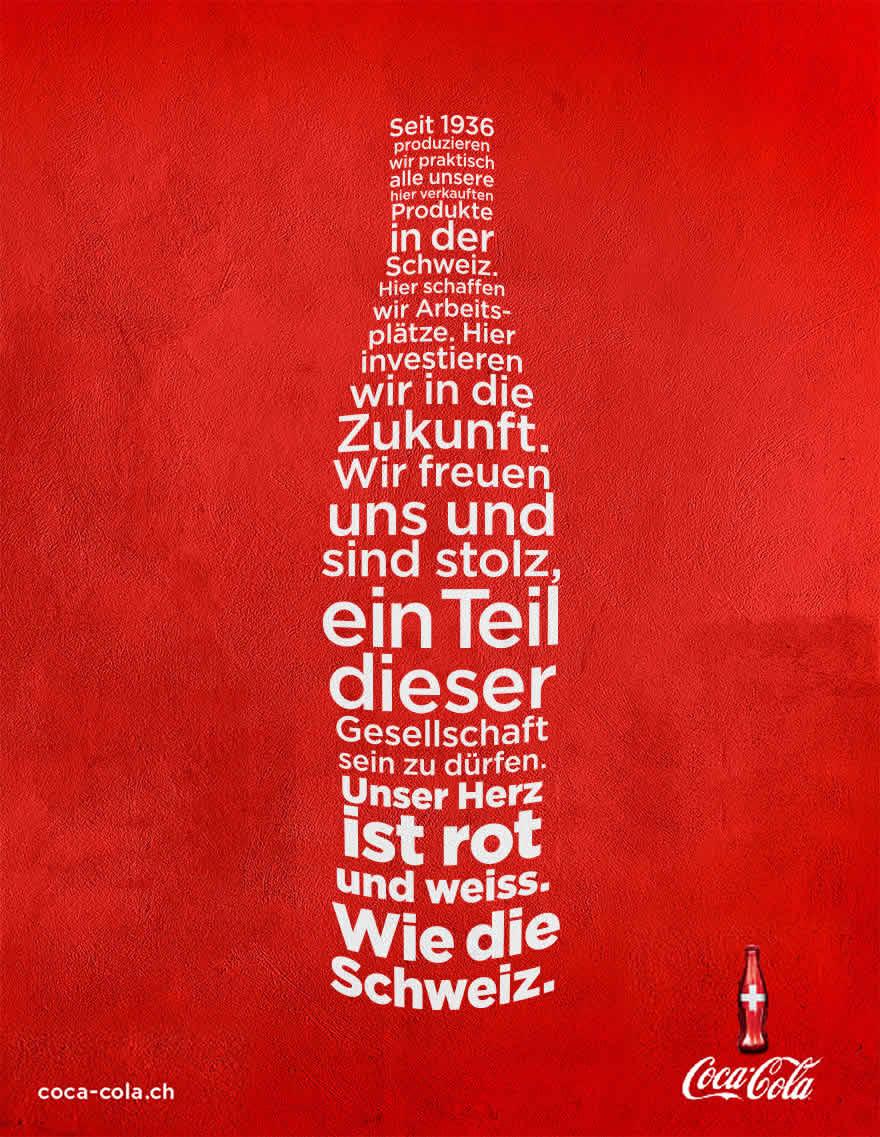 Für eine Schweiz des #mitenand. Dass sich Coca‑Cola dieser Tage für eine bunte und diskriminierungsfreie Schweiz stark macht, kommt nicht von ungefähr. Denn Coca‑Colas Kredo – in der ganzen Welt und hier in der Schweiz – steht kategorisch für Gleichberechtigung, Vielfalt und Toleranz.