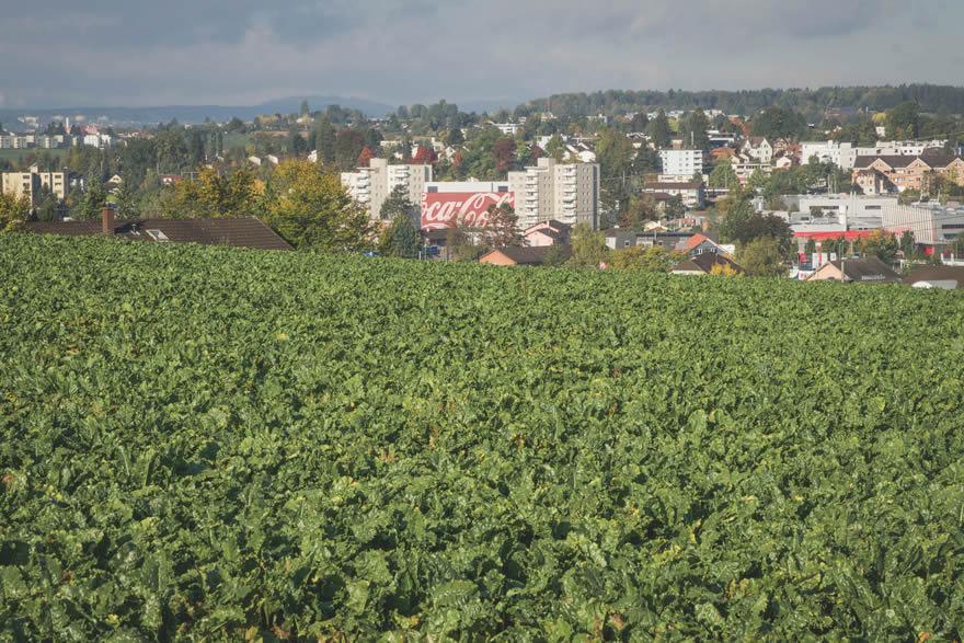 Les racines presque blanches dépassent d’à peine quelques centimètres de la terre marron. Bien cachées sous leur feuillage d’un vert puissant, les betteraves sucrières sont cultivées ici par Hansueli Wettstein. Nous rencontrons cet agriculteur passionné pile-poil au début de la saison de la récolte un matin d’octobre sous un ciel éclatant dans ses champs à Brüttisellen, à quelques centaines de mètres à vol d’oiseau du site de production de Coca‑Cola Suisse, là où le sucre extrait des racines est utilisé pour conférer aux boissons leur goût sucré.