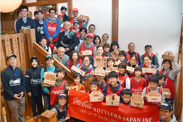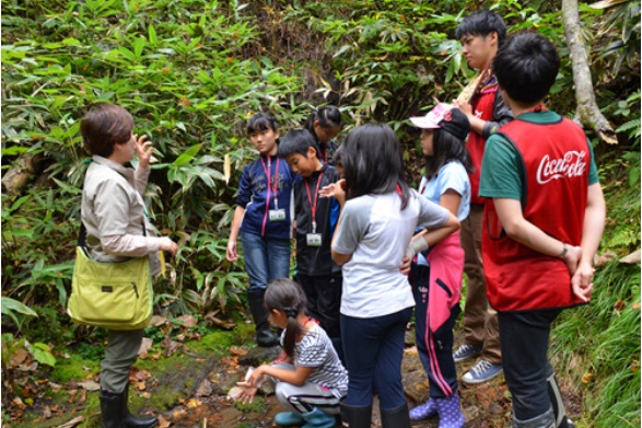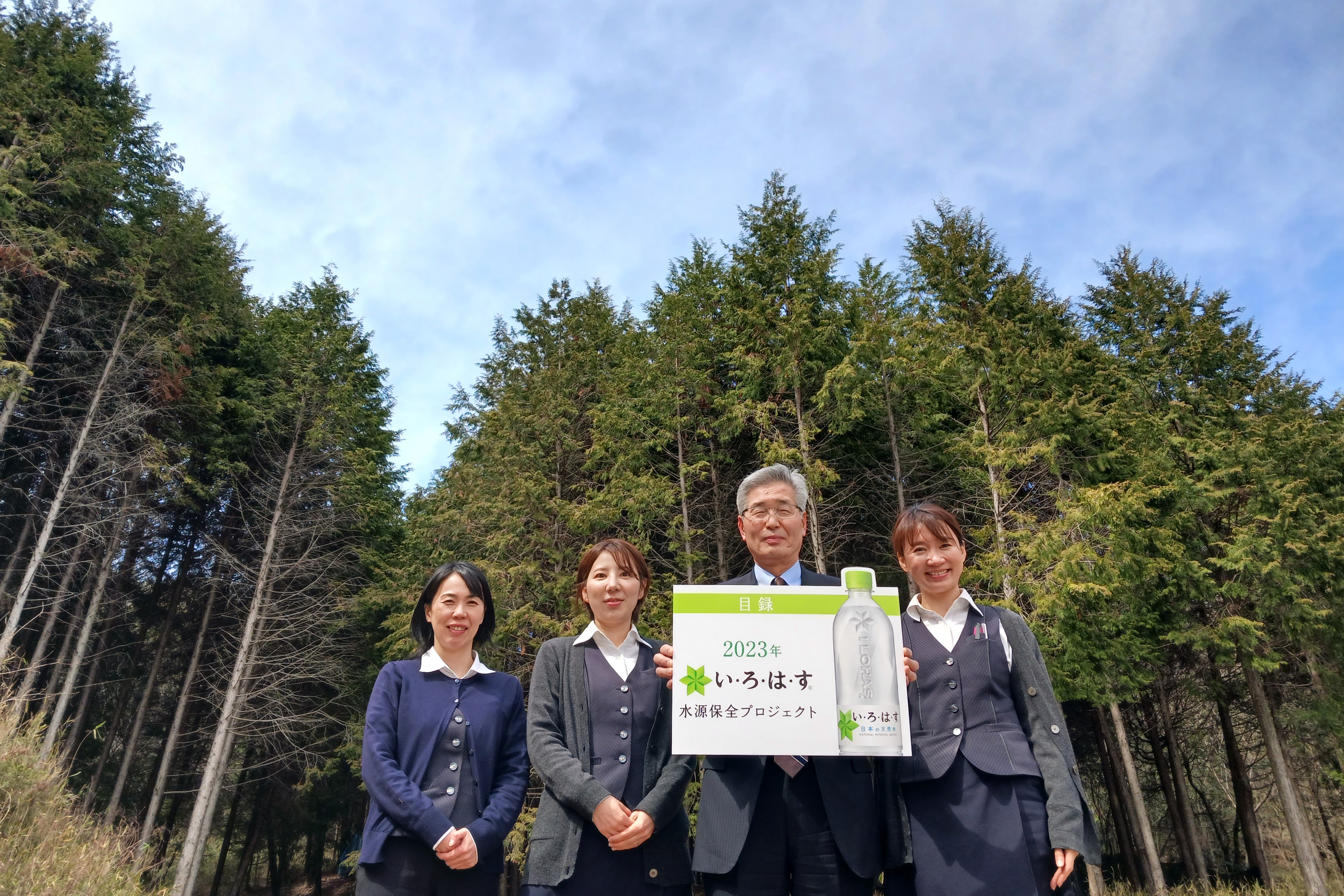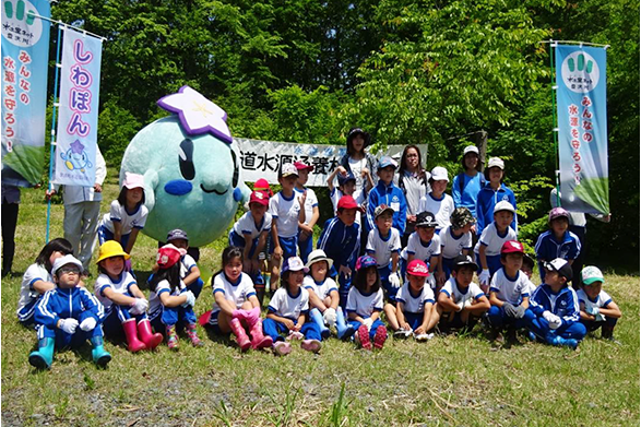 森に学ぼう「うるおいの森づくり」親子自然体験学習会に携わり、蔵王工場の水源地にあたる蔵王地域において、伐採跡地に2017年と2018年は各0.50ha、2019年に0.20ha計2,400本の落葉広葉樹を植林し、下刈等の保育事業も併せて実施しました。また、2017~2020年度の計4年間、「い・ろ・は・す水源保全プロジェクト」に参加し、水源域への植林と下刈、除伐、間伐を実施しました。
