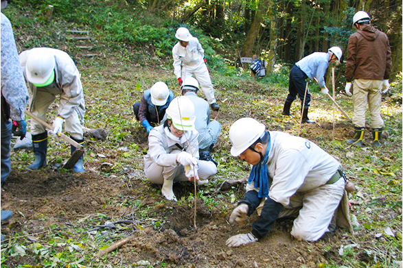 私たちは、県内の森林整備及び緑化の推進を図り、県民が豊かな緑と水に恵まれた快適な生活環境が維持できるよう、県民の自発的協力を基礎とした地域ぐるみの緑化運動を展開しています。今年も、県内各地で荒廃竹林の整備や広葉樹の植栽などの森づくりボランティア活動に取り組むほか、緑化苗木の配布やボランティア団体等への助成を行います。