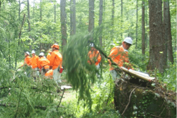 森林組合として地域に密着した活動を行っており、森林所有者の方と共に植林から素材丸太の出荷まですべての森林整備活動に携わっています。森林整備を行う際の安全確保の為の安全装備品の導入は既に行っていますが、ヘルメットの耐用年数が近づいているため更新を行い、安全に森林整備を進めていきたい。