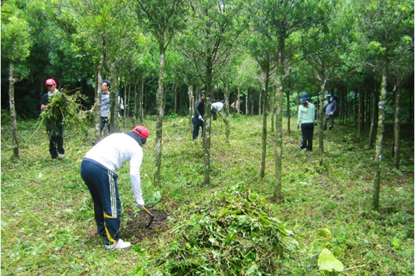 ・下草刈、肥料入れ、枝打ち、樹木札の取り付け、補植等。