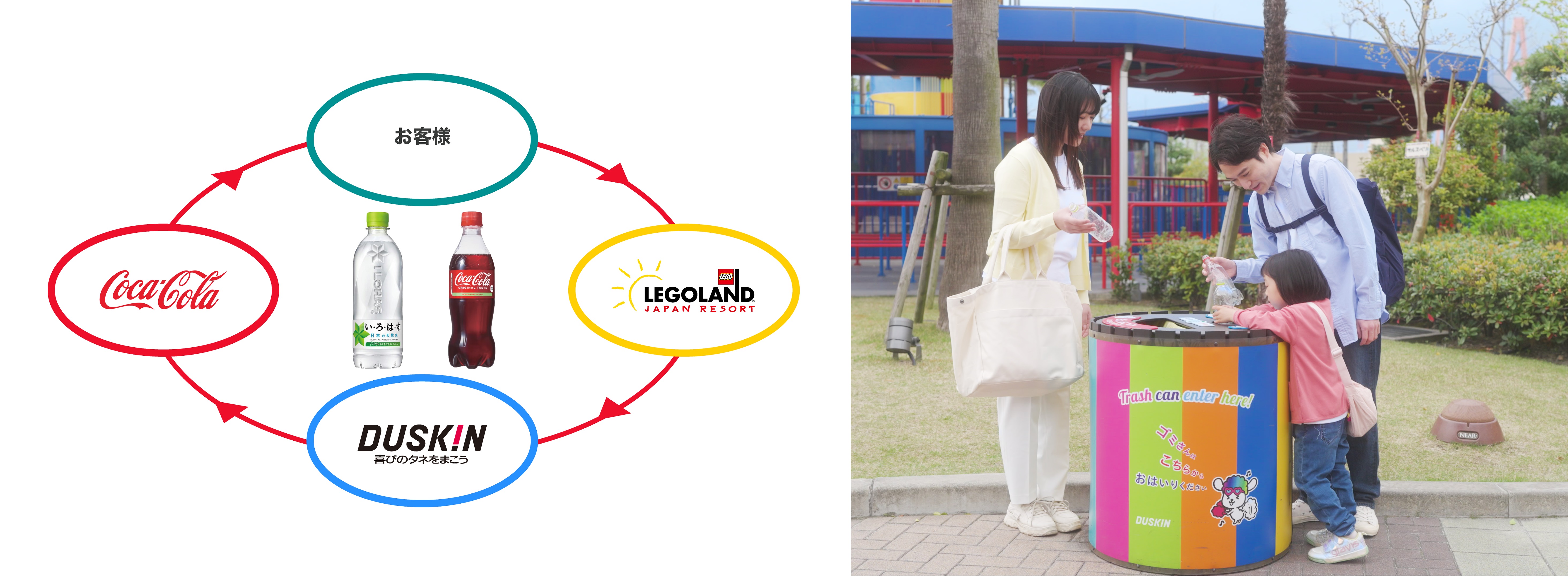 日本コカ・コーラ株式会社(本社:東京都渋谷区、代表取締役社長 ムラット・オズゲル)、コカ・コーラ ボトラーズジャパン株式会社(本社:東京都港区、代表取締役社長 最高経営責任者:カリン・ドラガン)、LEGOLAND Japan合同会社(本社:愛知県名古屋市、代表取締役社長:本多良行)、株式会社ダスキン(本社:大阪府吹田市、代表取締役 社長執行役員:大久保裕行)は協働し、「レゴランドⓇ・ジャパン・リゾート」内におけるテーマパーク 『レゴランドⓇ・ジャパン』および、ホテル『レゴランドⓇ・ジャパン・ホテル』における全ての使用済みペットボトルを回収し、新しいペットボトルとして生まれ変わる「ボトルtoボトル」*1水平リサイクルの取り組みを「ごみゼロの日」に合わせて5月30日(木)より開始します。