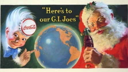 (제2차 세계대전으로 수많은 미군들이 전쟁터에 나가던 당시, 산타클로스와 스프라이트 보이는 코카-콜라 광고를 통해 군대에 경의를 표하는 모습을 보였다. (1944))