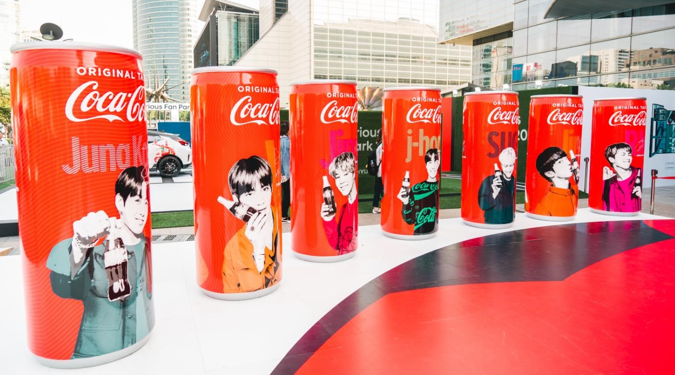 (▲ 월드컵 기간 중 ‘코카-콜라 월드컵 체험존’에 설치되었던 대형 코카-콜라 방탄소년단 캔 모형.)