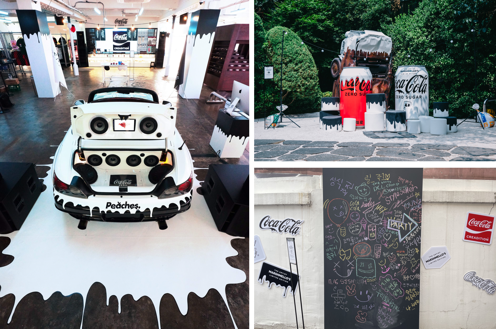 코카-콜라 제로 스타더스트에 이어, 코카-콜라 제로 MARSHMELLO 역시 피치스 도원에 팝업 스토어를 꾸몄다. 이번 컨셉은 신나는 음악과 함께하는 하우스 파티! 입장객들은 DJ 리듬 게임, 미니카 조종 등 다양한 미션을 수행하며 하우스 파티 멤버로 거듭날 수 있었다. 멋있는 장소에서 흥겹게 즐긴 후 짜릿하게 맛보는 코카-콜라 제로 MARSHMELLO 는 ‘제로의 꿈’이 상상의 영역을 넘어 예술과의 결합에도 성공했다는 사실을 증명해냈다.